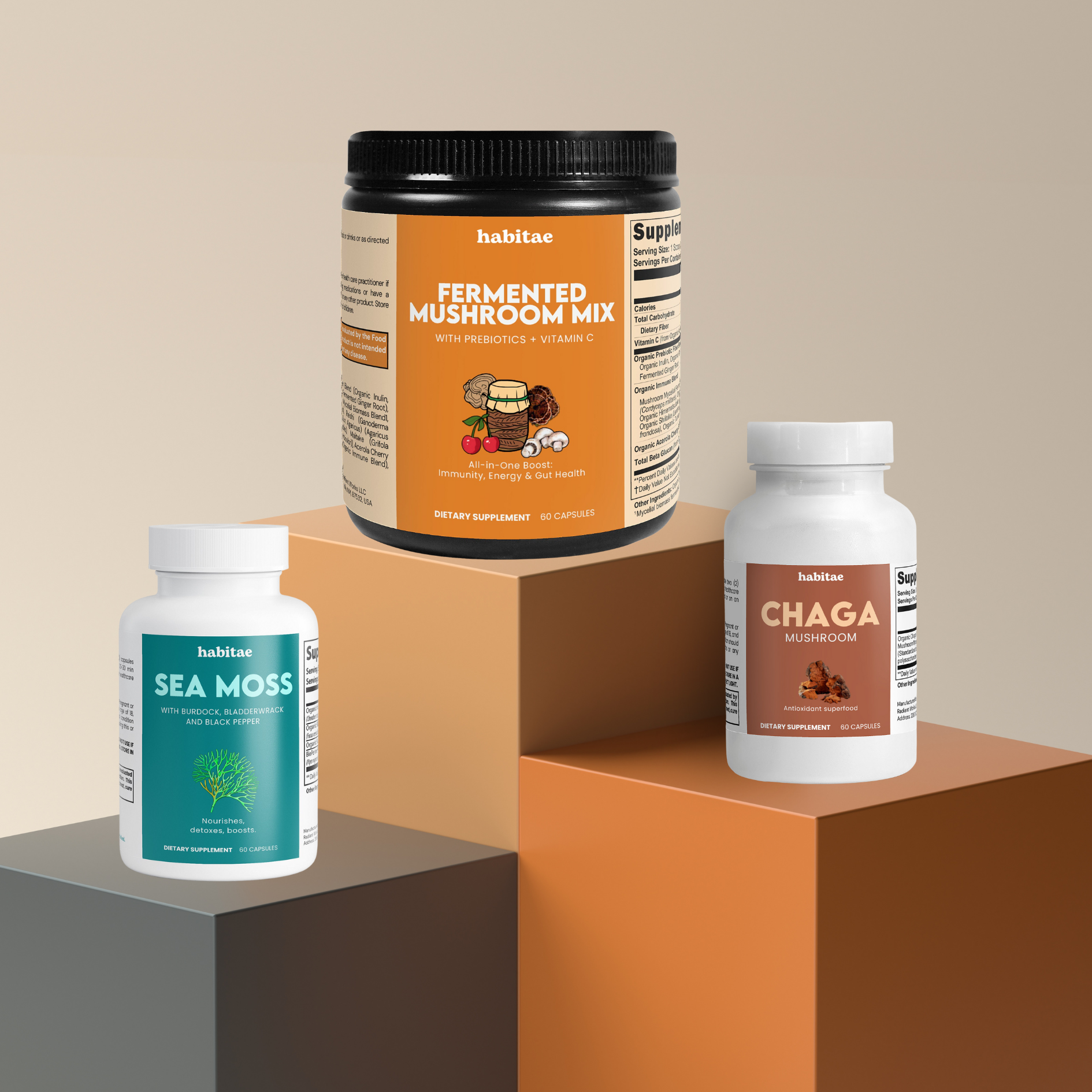 Our supplements are thoughtfully crafted to support whole-body wellness using nature’s most trusted ingredients. From mineral-rich sea moss to adaptogenic mushrooms and botanical blends, each formula is designed to nourish from within. Packed with essential nutrients, antioxidants, and plant-based compounds, our products help promote balance, energy, immunity, digestion, and mental clarity. Clean, vegan-friendly, and backed by tradition and emerging science, our supplements offer a natural, effective alternative to overly processed wellness solutions — helping you feel your best, every day.