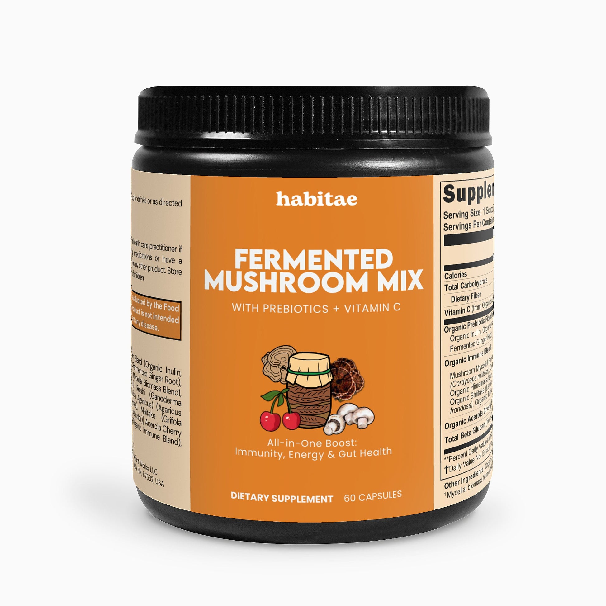 🍄 Fermented Mushroom Mix features probiotic-fermented mushrooms and vitamin C to enhance digestion, absorption, and immune function