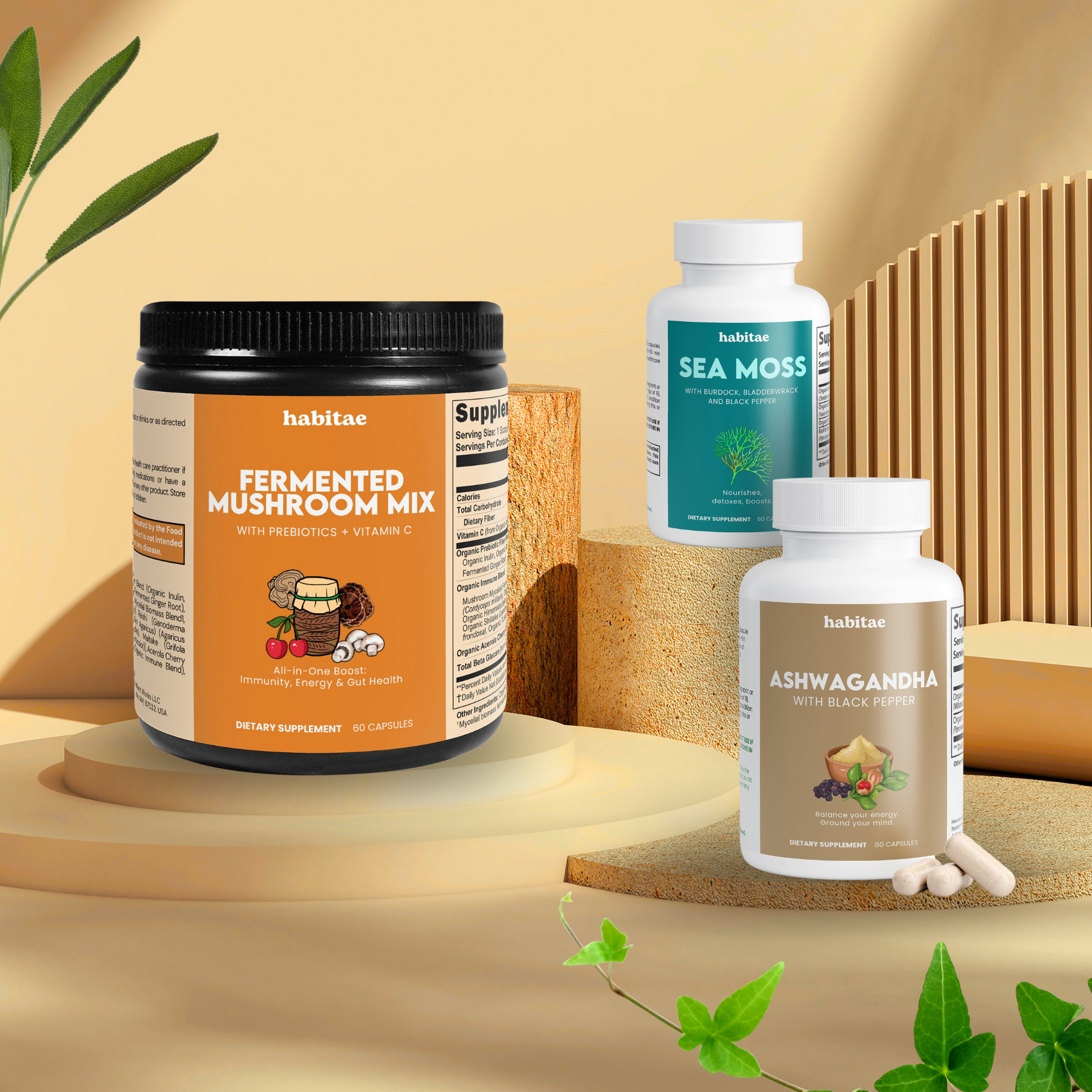 Our supplements are thoughtfully crafted to support whole-body wellness using nature’s most trusted ingredients. From mineral-rich sea moss to adaptogenic mushrooms and botanical blends, each formula is designed to nourish from within. Packed with essential nutrients, antioxidants, and plant-based compounds, our products help promote balance, energy, immunity, digestion, and mental clarity. Clean, vegan-friendly, and backed by tradition and emerging science, our supplements offer a natural, effective alternative to overly processed wellness solutions — helping you feel your best, every day.